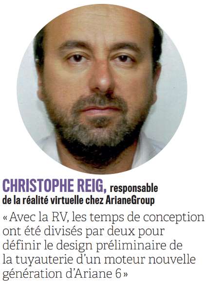 « Visualiser en 3D immersive plutôt qu’en 2D/3D facilite la réflexion », avance Christophe Reig, responsable de la réalité virtuelle chez ArianeGroup. « Les objectifs sont de visualiser le produit à échelle 1 et de détecter le plus en amont possible tous les risques de collision, de télescopage entre les différents composants. Ce sont souvent les événements transitoires qui posent problème », souligne-t-il.