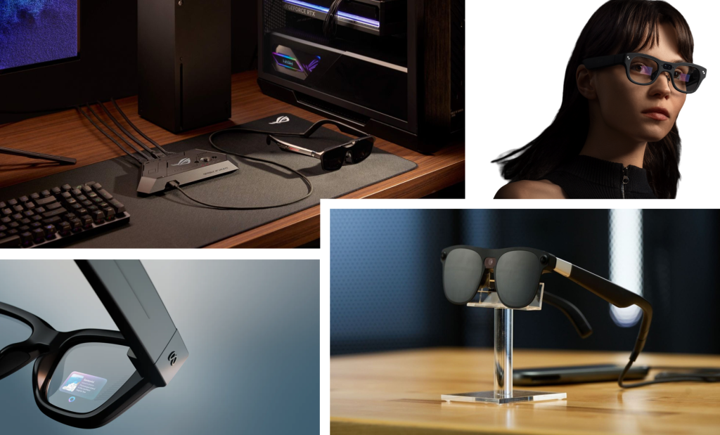 ASUS/ROG pousse la logique “gaming/immersive” avec ses Xreal R1 (co-développées avec XReal) qui ciblent les gamers avec un taux de rafraîchissement de 240 Hz, une première mondiale qui ouvre aussi des perspectives pour les applications industrielles nécessitant une réactivité extrême.