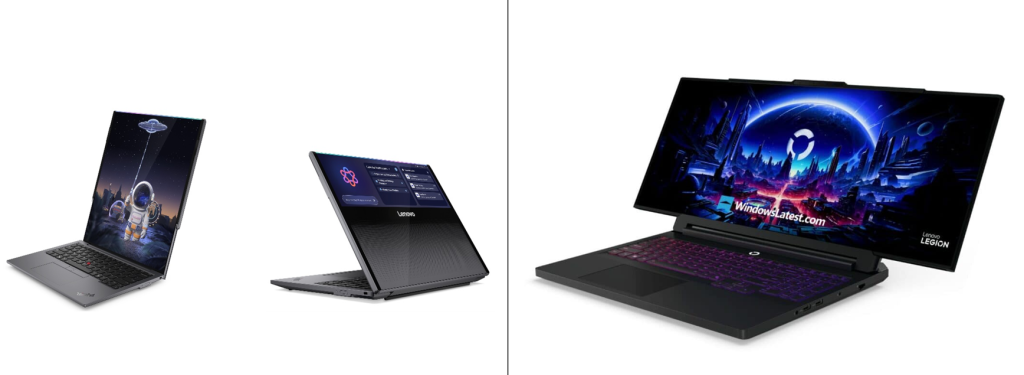 Au CES 2026, la « flexibilité » des écrans a enfin commencé à quitter le registre de la démo gadget pour prendre la forme de concepts assez aboutis, au point de devenir l’un des points de fixation du salon : Lenovo a fait sensation avec deux PC « rollables », dont le Legion Pro Rollable (un PC de Gaming à écran 16 pouces qui s’étire horizontalement pour basculer vers des formats ultra-larges, au service de l’immersion) et le ThinkPad Rollable XD (un 13,3 pouces qui s’agrandit verticalement jusqu’à ~16 pouces, avec une dalle OLED qui s’enroule autour du capot et peut même afficher des widgets lorsque le PC est fermé, protégée par du verre renforcé).