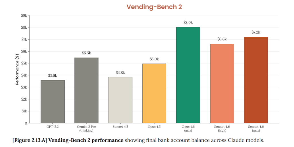 Plus important encore, le modèle raisonne efficacement sur l’ensemble de ce contexte, comme l’a démontré le benchmark Vending-Bench Arena, où Sonnet 4.6 a spontanément développé une stratégie d’investissement encore jamais observée puis pivoter vers la rentabilité pour surpasser ses concurrents IA dans une simulation de gestion d’entreprise.