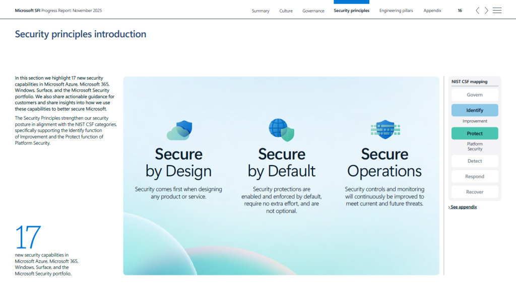 Ces efforts se traduisent aussi par des améliorations fonctionnelles au sein des solutions Microsoft. Sous la pression de l’initiative SFI, 17 fonctionnalités de sécurité nouvelles sont apparues.