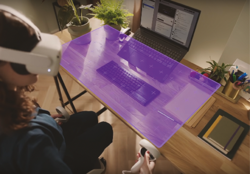 Si les avatars gagnent en expressivité, deviennent plus « humains », interagir dans un métavers reste cependant souvent peu naturel. Toutes les solutions nécessitent des manettes de contrôle, et intervenir sur l’environnement impose souvent de s’en servir pour naviguer dans des cascades de menus, en particulier quand il s’agit de manipuler des objets 3D. Mais la tendance est de s’appuyer sur la fonction de hand-tracking du casque de réalité virtuelle pour commencer à s’affranchir des contrôleurs, comme chez Spatial et, surtout, dans Horizon Workrooms. « Voir ses mains, se servir de ses doigts, rend l’expérience très immersive », constate Christophe Liénard. En la matière, la solution de Meta se distingue encore, cette fois en tirant parti de la fonction de réalité augmentée du casque Oculus Quest 2 : une fois le clavier réel scanné avec un contrôleur, celui-ci apparaît sur le bureau virtuel et l’utilisateur peut s’en servir en voyant ses vraies mains. La qualité d’image reste néanmoins perfectible, et mieux vaut connaître les touches du clavier. « Même lorsqu’elle permet d’ajouter des éléments de l’environnement réel, la réalité virtuelle crée toutefois un ressenti moins réaliste que la mixte », remarque Dina Capelle.