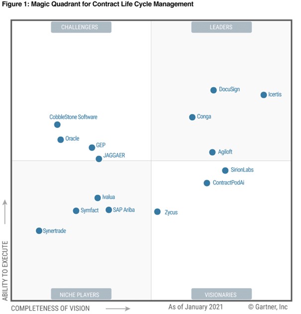 Leader selon le dernier Magic Quadrant de Gartner et la Forrester Wave portant sur les solutions de CLM (Contract Life Cycle Management), Icertis se distingue notamment de ses concurrents d’après les analystes par la variété des contrats gérés.