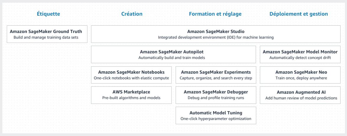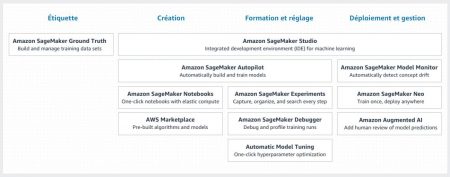 Avec un existant reposant déjà majoritairement sur les solutions proposées par AWS (environnement microservices, chaine CDI, etc.), Hiveo s’est tout naturellement tourné vers la nouvelle offre SageMaker d’Amazon pour moderniser sa plateforme. Service entièrement géré permettant de créer, de former et de déployer rapidement des modèles, SageMaker est un IDE (Integrated Development Environment) pour Machine Learning. Outre les fonctions classiques de test, de debugging ou encore d’orchestration, la solution propose de nombreux composants pour simplifier et accélérer le développement et l’entrainement de modèles.