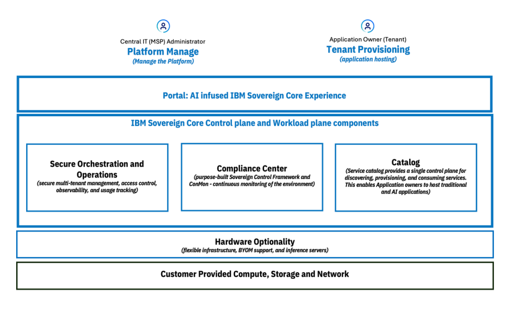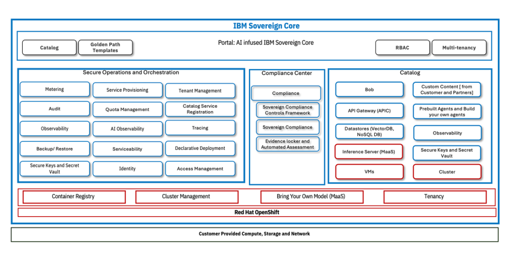 L’idée consiste à ramener le débat vers l’architecture, l’exploitation et la preuve, plutôt que vers une simple promesse contractuelle ou un périmètre géographique. Dans sa communication, IBM présente Sovereign Core comme un socle permettant de concevoir, déployer et gérer des workloads cloud-native et IA « sous l’autorité propre de l’organisation », dans la juridiction choisie, en s’appuyant sur les bases open source que sont Red Hat Enterprise Linux et OpenShift.