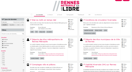 Le recours aux données privées reste très marginal, représentant moins de 0,5 % du catalogue. Celles-ci proviennent principalement de partenaires tels que Enedis, Engie et GRDF. Rennes Ville et Métropole ont été en 2010 les premières collectivités à publier un catalogue de données ouvertes. La collectivité s’appuie également sur plus de vingt-cinq ans d’expérience en modélisation 3D : une première maquette numérique de la ville a été créée en 1999 et enrichie en 2006 par des texturations réalistes issues de prises de vues aériennes obliques. En 2012, cette maquette a été étendue à l’ensemble du territoire métropolitain.
