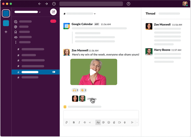 Comme d’autres, Slack mise sur le format vidéo asynchrone pour faciliter la communication entre collègues. Plutôt que de les réunir pour leur apporter une information, l’utilisateur réalise une courte vidéo de lui ou de son écran et leur transmet.