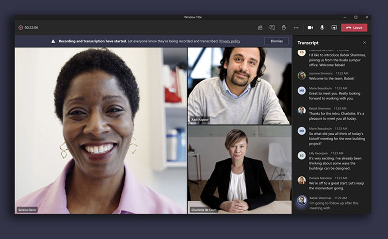 Pour être à la hauteur de leur nouveau statut, les solutions ont beaucoup progressé sur le plan fonctionnel. C’est notamment le cas en termes de capacités à capitaliser et partager les échanges. Dans l’application de bureau Teams, il est ainsi désormais possible de retranscrire en direct les conversations. Cette fonction s’appuie sur l’outil de reconnaissance automatique du langage de Microsoft (ASR). Pour améliorer la précision de la transcription, notamment pour identifier le vocabulaire métier, l’intelligence artificielle (IA) analyse l’invitation à la réunion, les documents qui y sont joints, ou encore les récents e-mails des participants. La conversation s’affiche dans une colonne, avec les avatars des personnes prenant la parole. La retranscription est ensuite téléchargeable depuis la réunion Teams ou le calendrier dans laquelle celle-ci était programmée.