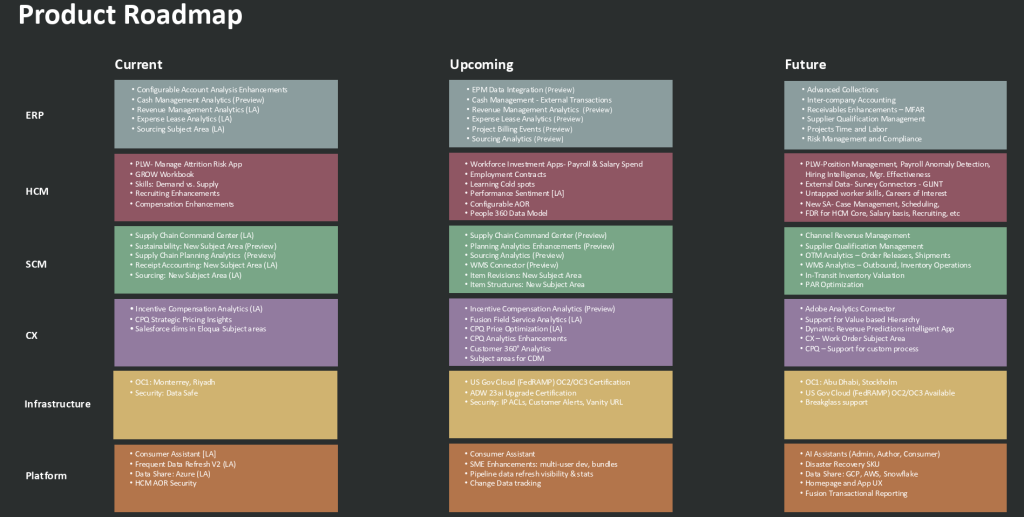 Côté RH, de nouveaux agents apparaissent dans HCM pour aider à la mobilité interne en suggérant des postes aux employés, à la gestion de la performance en préparant des ébauches d’évaluations, et au développement des compétences en recommandant des formations pertinentes. Les benchmarks entre pairs aident à situer attrition, recrutement ou composition des équipes. Les agents Analytics des compétences éclairent où les expertises manquent, sont sous-utilisées ou menacées, pour piloter redéploiements et plans de montée en compétences.