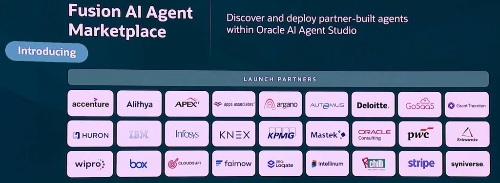 En parallèle, Oracle a annoncé le lancement d’une place de marché « Oracle Agent Marketplace » pour les agents IA. Il s’agit d’une initiative stratégique visant à créer un effet de réseau. Oracle fournit la plateforme (Fusion Applications et l’Agent Studio), tandis que son vaste écosystème de partenaires (incluant des géants du conseil comme PwC, IBM, Accenture, Deloitte et Infosys) est encouragé à construire et à monétiser des agents spécialisés par industrie ou par processus.Cette place de marché enrichit considérablement la valeur de la plateforme Fusion, offrant aux clients un accès à une bibliothèque croissante d’innovations.