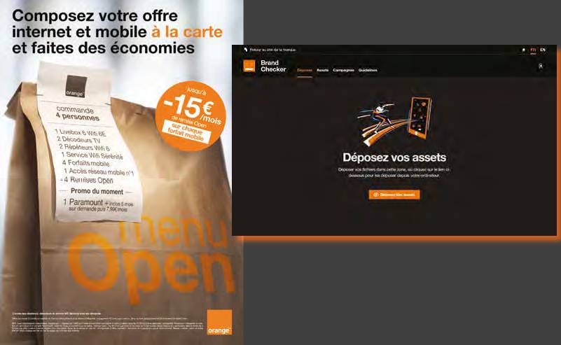 Pour faire agréer un contenu marketing, il suffit aux collaborateurs d’Orange de le déposer dans l’outil Brand Checker pour obtenir une validation ou un refus accompagné d’un rapport explicatif complet.