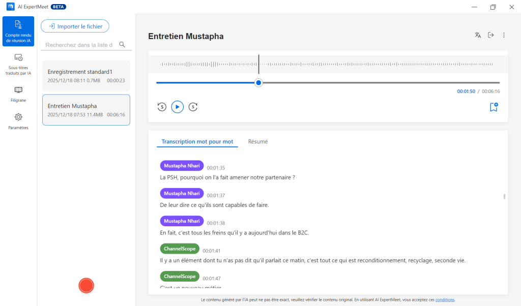 Livré en standard avec l’ExpertBook PM3, AI ExpertMeet est un couteau-suisse pour les réunions : il enregistre, traduit, sous-titre en temps réel, transcrit et résume tout en ayant la capacité de distinguer tous les interlocuteurs.