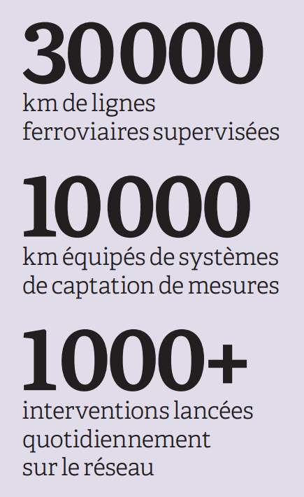 En charge de l’entretien, de la modernisation et de la sécurité d’un réseau ferroviaire de 30 000 kilomètres, SNCF Réseau avait dès le début des années 1990 commencé à déployer des dispositifs de collecte d’informations sur ses lignes. Au début, il s’agissait surtout d’automates industriels connectés aux systèmes de signalisation. Par la suite, la société a aussi déployé des capteurs sur les voies et les caténaires, ainsi que des systèmes mobiles de captation qui circulent sur les voies.