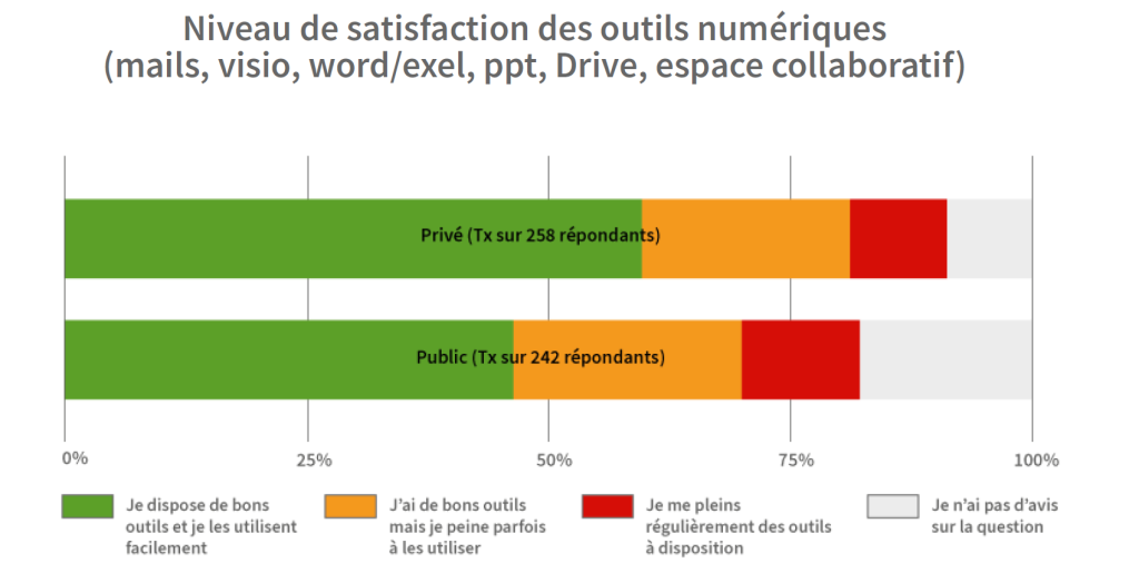 Certes la satisfaction déclarée procurée par les outils actuels est « correcte », mais elle traduit surtout « une habitude » face à des outils devenus incontournables. Ce n’est ni un indicateur de maîtrise, ni un levier de transformation.